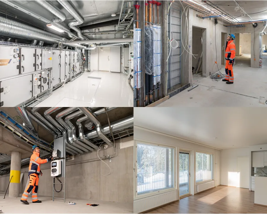 Neljän taloyhtiön, 178 asunnon ja kahden parkkihallin sähkö-, LVI- ja automaatiourakat sekä aurinkosähkö- ja latausjärjestelmät.